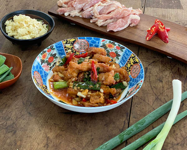 台灣雞腿去骨酥炸,秘方辣醬大火熗炒,鹹甜脆皮嗆辣涮嘴。
