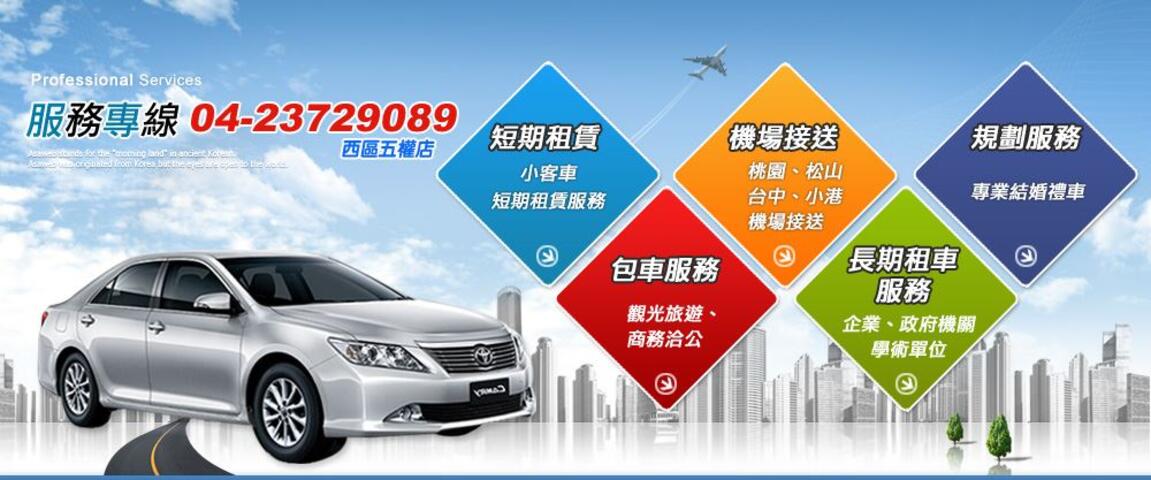 鄰近台中中興大學、台中教育大學,近台中火車站、台中公路客運總站、烏日高鐵站,逢甲、一中、東海、精明商圈交通方便,目前公司服務項目已提供 ~ 長短期租賃、台中租車、高鐵租車、學生租車、旅遊租車、旅遊諮詢、商務旅遊包車、機場接送、結婚禮車,租車價格便宜,車輛新穎,提供客戶「全方位貼心的租車服務」,並不斷努力持續改善服務流程,擴大提供符合顧客期待的各項創新商品與專業服務,並秉持著服務的熱忱,提供交通車至火車站、烏日高鐵站及統聯、和欣客運、國光客運總站、指定地點皆「免費接送」!